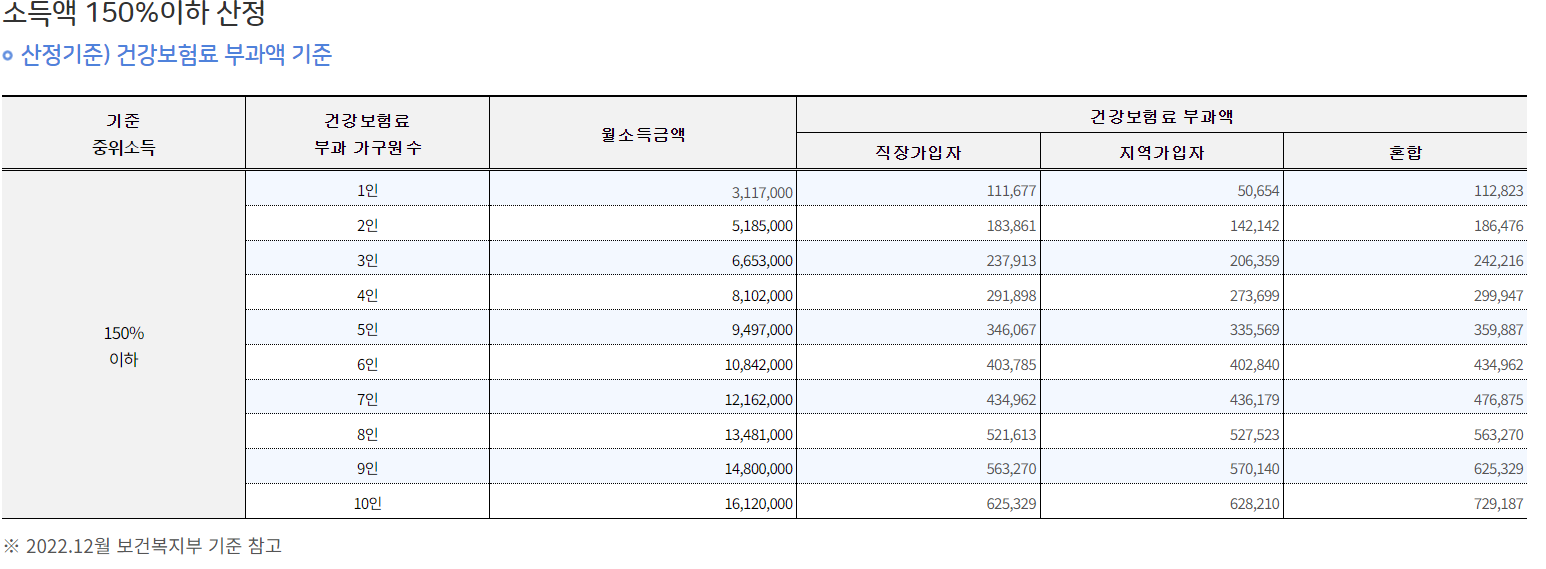 소득조건으로 기준 중위소득 150% 이하인 사람