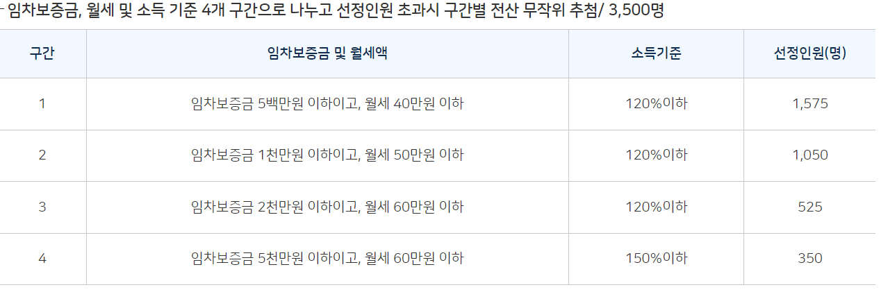 - 서울시 월세로 거주하면서 임차 보증금 5,000만원 이하 및 월세 60만원 이하인 무주택자