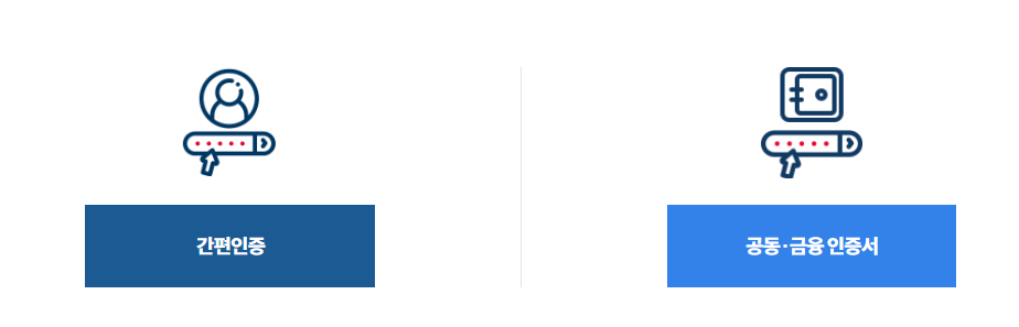 처음 로그인 시 인증서 로그인을 하지 않았다면 간편 인증 또는 인증서로 로그인을 해주세요