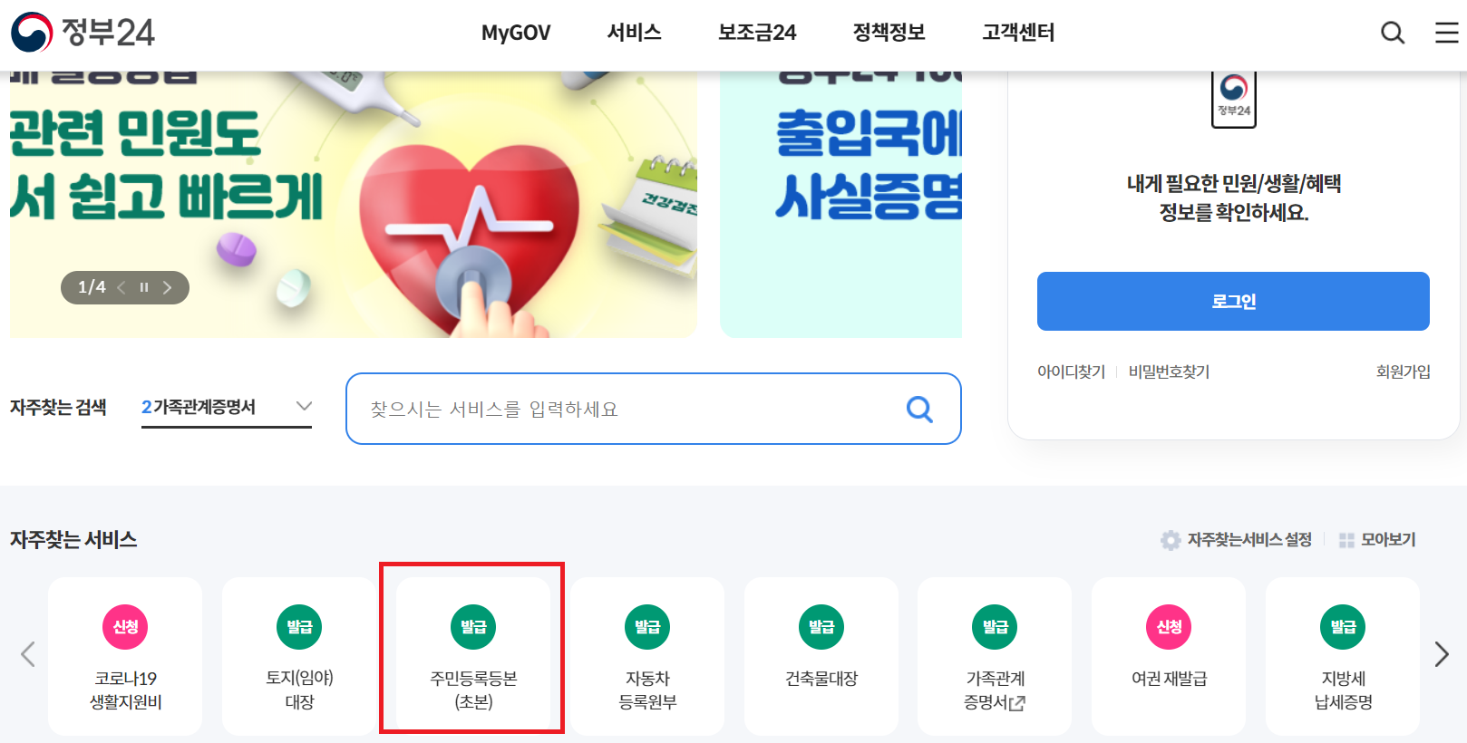등본 인터넷발급 정부24시 홈페이지로 이동합니다