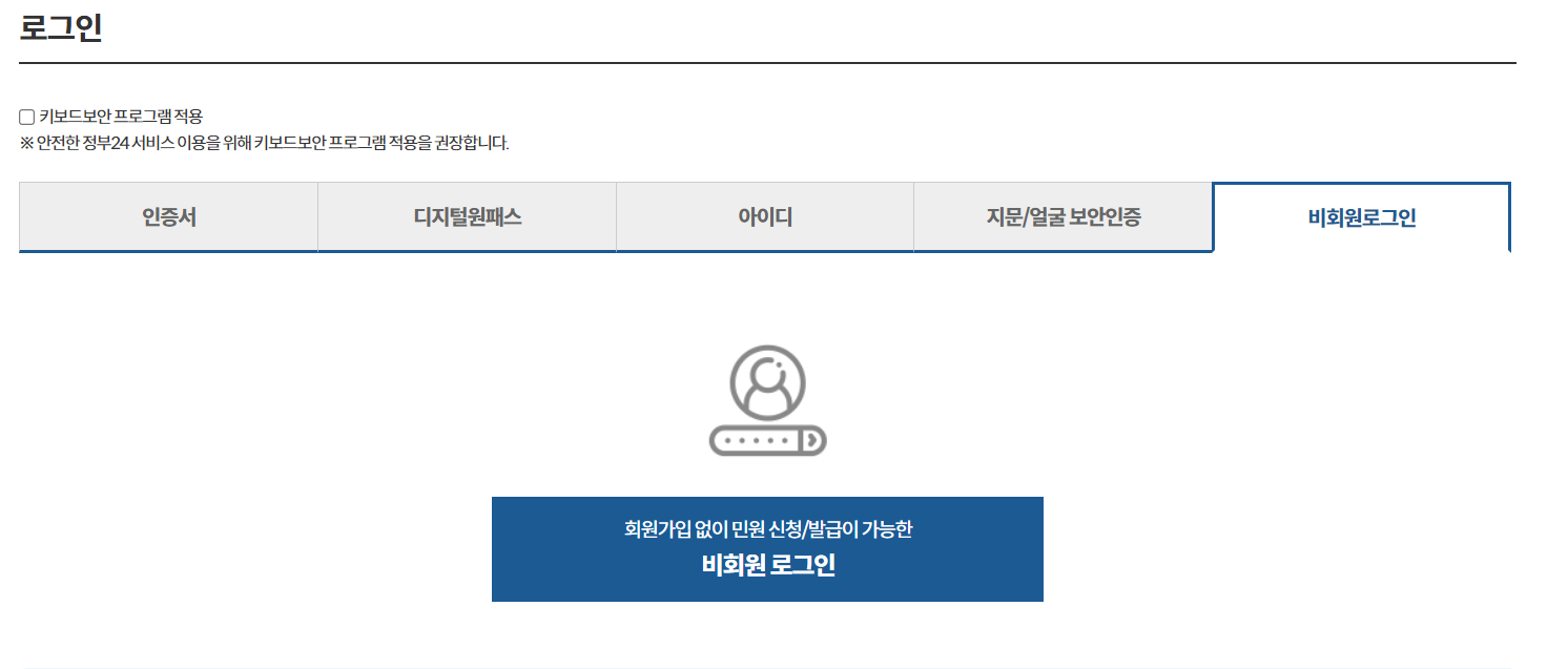 원하는 방식으로 로그인을 합니다. 등본, 초본 발급의 경우 인증서를 선택하셔야 출력이 가능합니다.