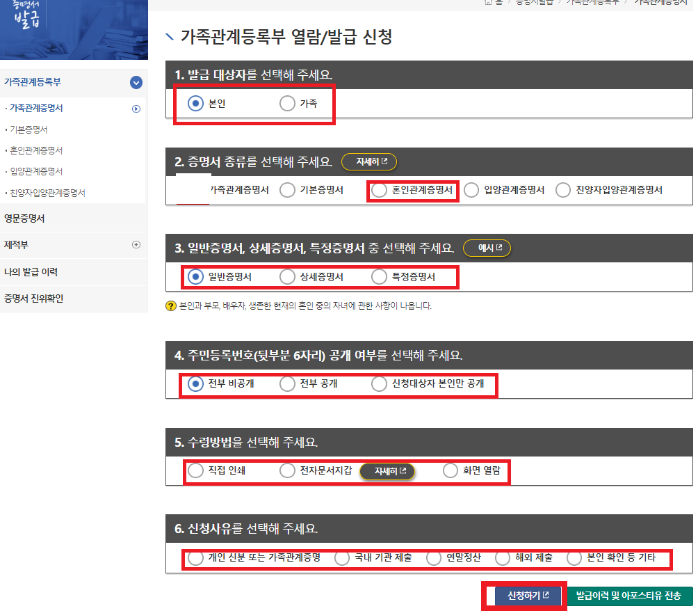 혼인관계증명서 발급방법