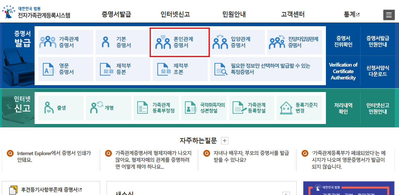 혼인관계증명서 인터넷발급 홈페이지로 이동합니다